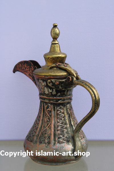 Antike Dallah Kaffeekanne aus Syrien 23 cm hoch mit floralen Mustern