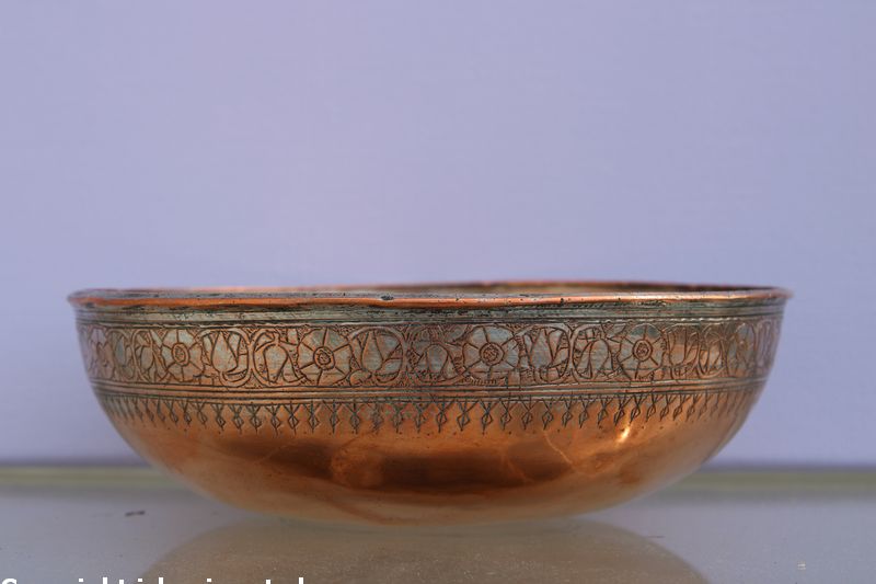 Antike Kupferschale Kadscharen Qadscharen Persien verziert 1850 – 1890 Jahrhundert